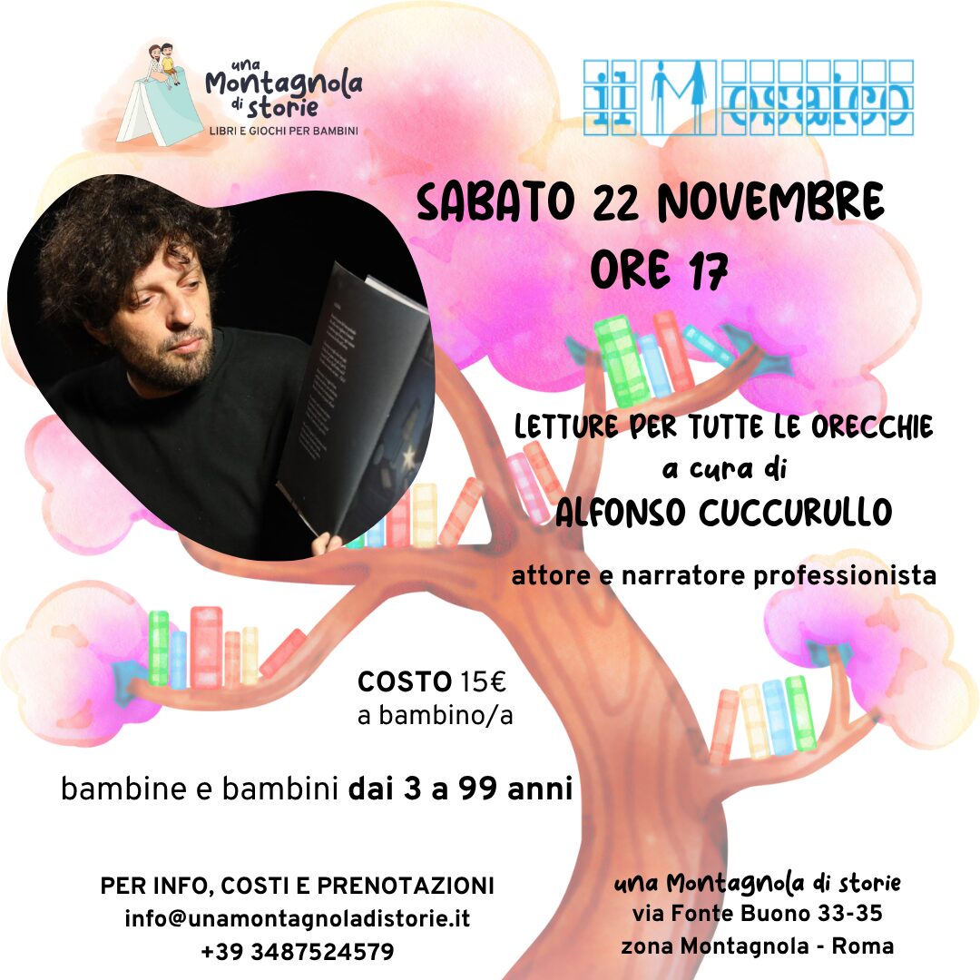 SABATO 22 NOVEMBRE 2025 ORE 17Letture per tutte le orecchie di e con Alfonso Cuccurullo, lettore e attore professionista, formatore Nati per Leggere.Siete sicuri di volervi perdere l'occasione di ascoltare insieme ai vostri figli e figliela lettura di storie divertenti, spaventose, buffe, avventurose lette magistralmente da Alfonso Cuccurullo?Io vi consiglio di esserci!Costo:15€ a bambino/aPrenotazione obbligatoria Prenota… Leggi tutto »Letture per tutte le orecchie – Alfonso Cuccurullo