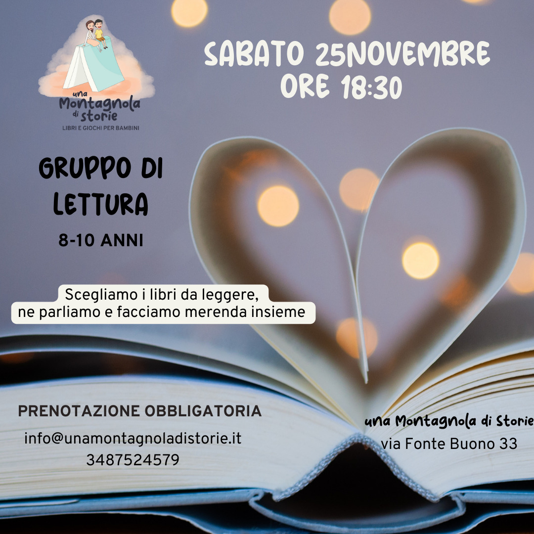 Gruppo di Lettura Secondo appuntamento con il gruppo di lettura dedicato ai ragazzi e le ragazze dagli 8 anni.SABATO 25 NOVEMBRE ORE 18:30Ci siamo lasciati, circa un mese fa, ognuno con il suo libro preferito della terna proposta.Ci rivediamo per scoprire cosa ci ha appassionato delle storie lette, perché consiglieremmo ad un coetaneo di leggere… Leggi tutto »GRUPPO DI LETTURA 8+