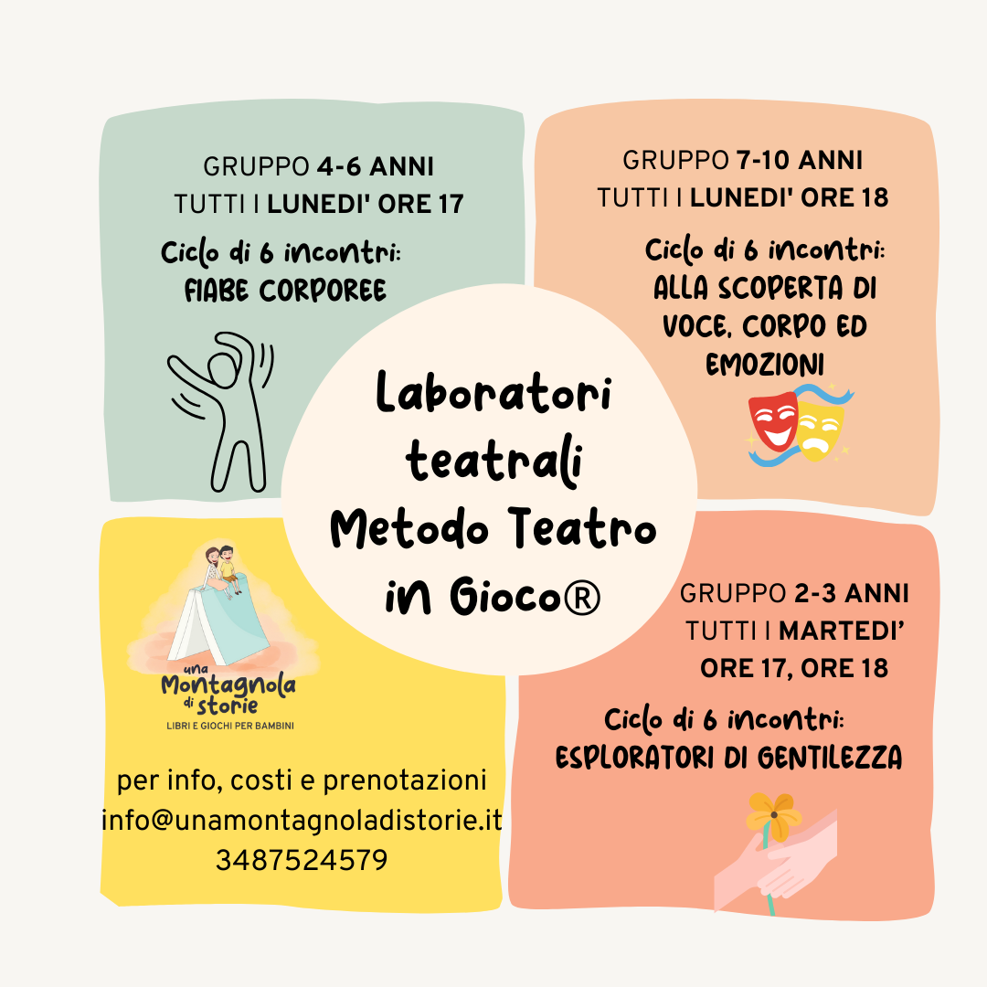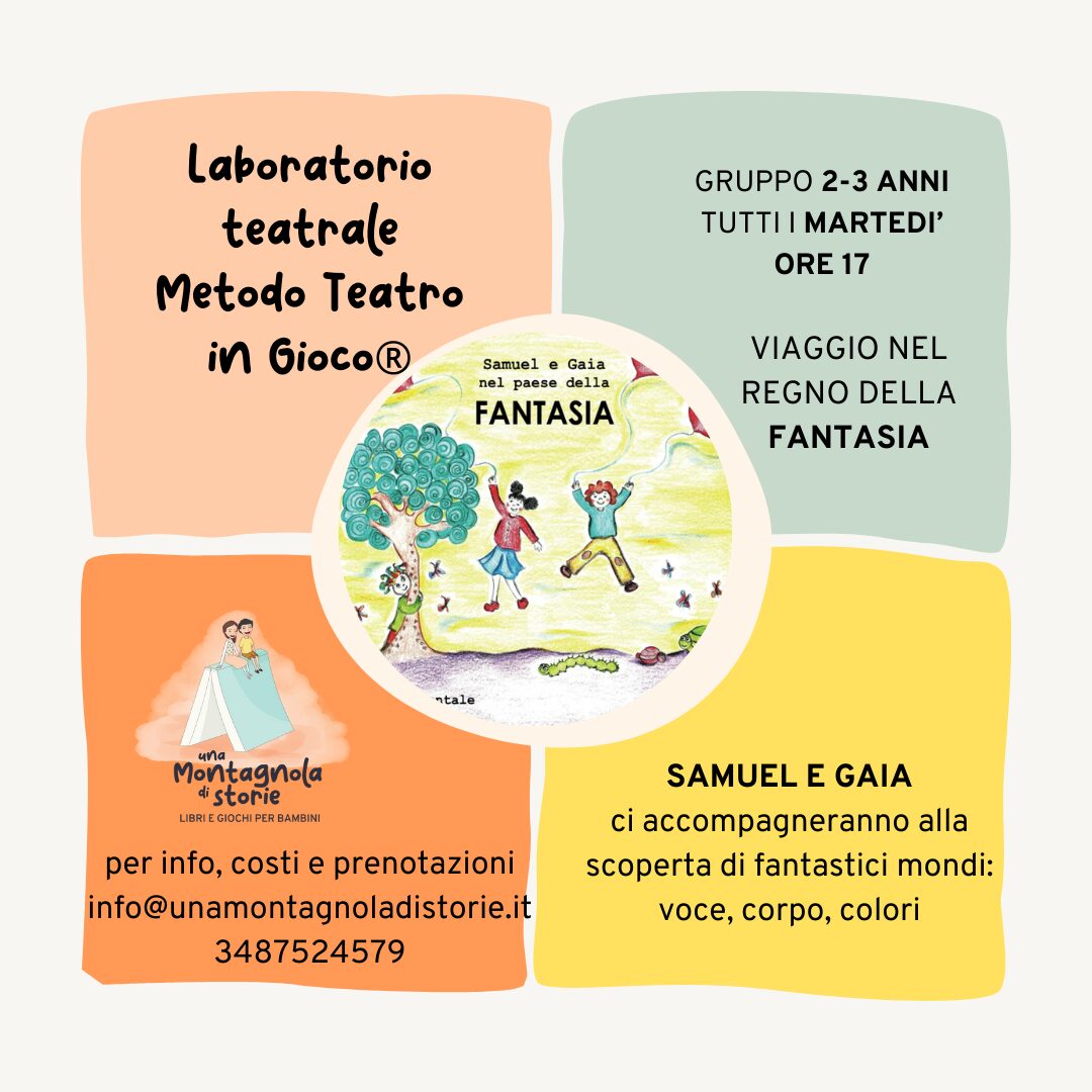 Laboratorio teatrale con il Metodo Teatro in Gioco® TUTTI I MARTEDì ORE 17Gruppo 2-3 anniViaggio nel Regno della FantasiaVi proponiamo un percorso tematico di 6 incontri in cui viaggeremo nel paese della Fantasia(ogni incontro è autoconlusivo, è possibile partecipare a tutto il percorso, ad un solo incontro oppure ad un pacchetto di 6 incontri).Personaggi costante… Leggi tutto »Laboratorio teatrale 2/3 anni