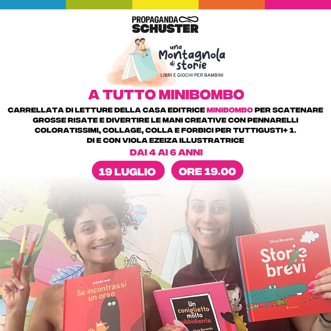 A TUTTO MINIBOMBO VENERDì 19 LUGLIO ORE 19 a Parco Schuster Vieni ad ascoltare alcune delle più divertenti storie edite dalla casa editrice Minibombo. Al termine delle letture, piccolo laboratorio creativo con l'illustratrice Viola Ezeiza. Vi aspettiamo! CI SARO'