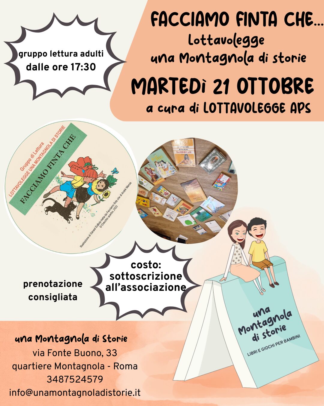 MARTEDì 10 GIUGNO ore 17:30L'APS LOTTAVOLEGGE invita genitori, educatrici/tori, insegnanti e tutti gli adulti interessati a partecipare alGRUPPO DI LETTURA SULLA LETTERATURA PER L'INFANZIA.Qual è il libro che è rimasto nel nostro cuore?un ultimo incontro prima dell'estate per condividerne la lettura ed eventuali ricordi...Portate con voi un libro che vi ha aperto "la porta segreta" dell'immaginazione,… Leggi tutto »Facciamo finta che… Lottavolegge Una Montagnola di Storie