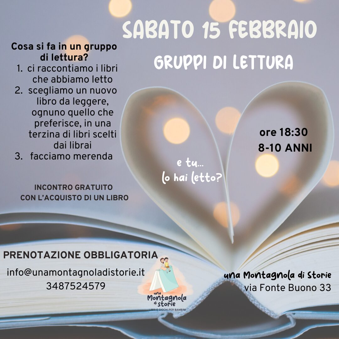 E TU LO HAI LETTO? GRUPPO 8-10 ANNI Durante la fase iniziale ci si confronta sulle letture del mese precedente, si racconta agli altri alcune particolarità a partire da domande stimolo… Leggi tutto »GRUPPO DI LETTURA 8-10 ANNI