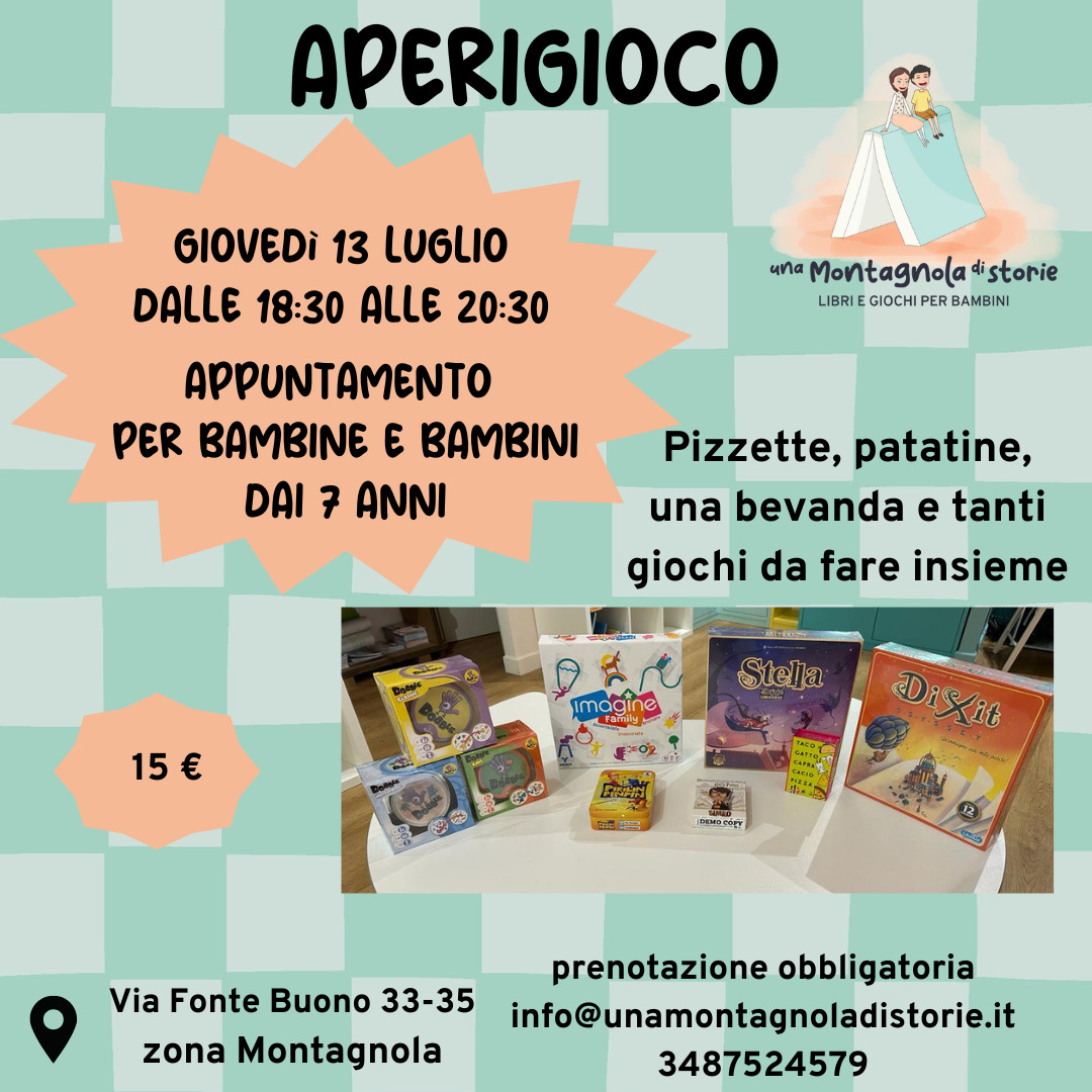 Una Montagnola di Storiepropone aperitivo e giochi da tavolo in libreria per bambini dai 7 anni su. GIOVEDì 13 LUGLIO ore 18:30Un'occasione per bambine e bambine di passare delle orein compagnia e di condividere momenti di gioco divertenti, senza genitori.I bambini e le bambine si sfideranno in avvincenti partite con giochi da tavolache talvolta saggeranno… Leggi tutto »Aperigioco – 7+