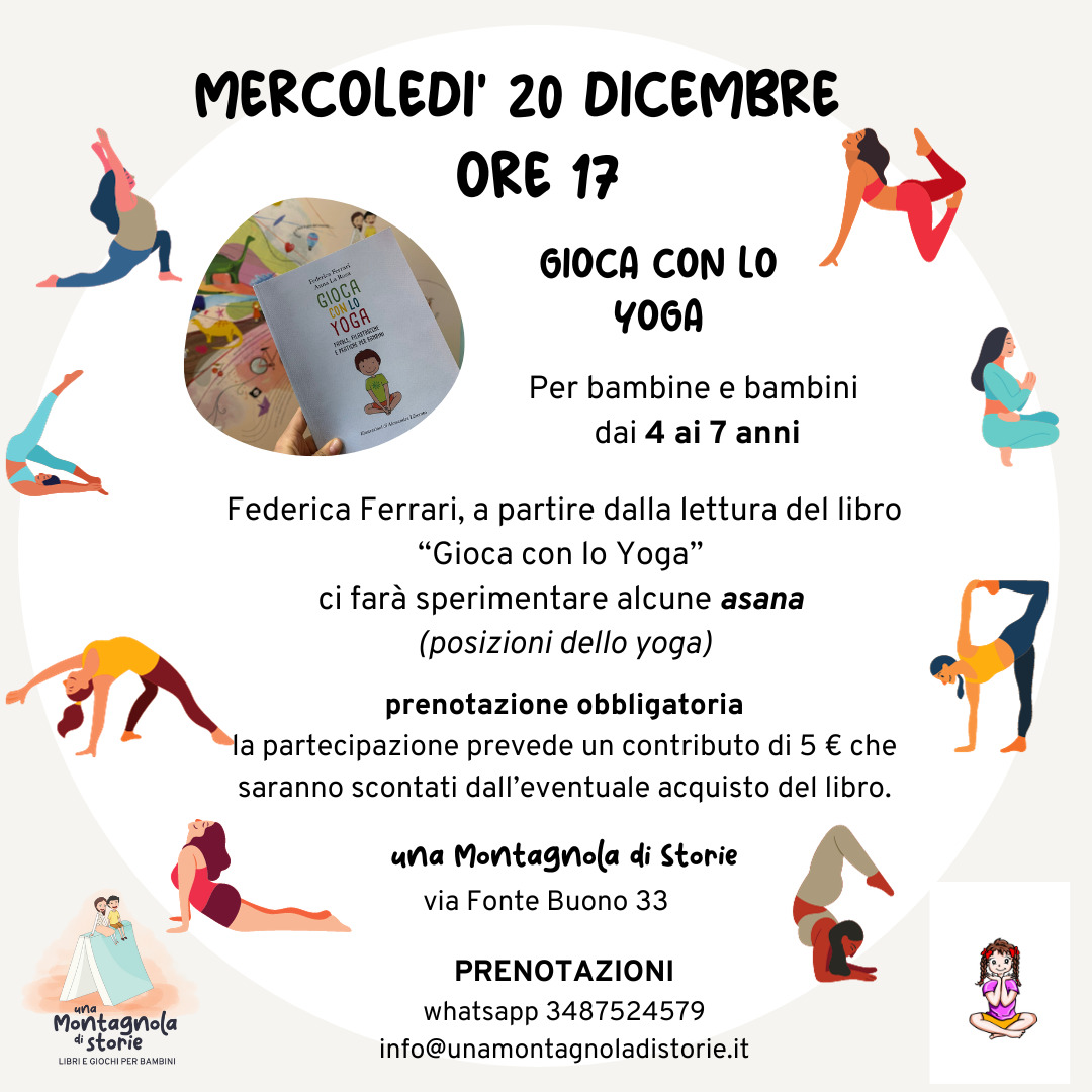 Yoga per bambini MERCOLEDI' 20 DICEMBRE ORE 17 Federica Ferrari, a partire dalla lettura del loro libro “Gioca con lo Yoga” ci farà sperimentare alcune asana. la partecipazione prevede un contributo di 5 euro, che saranno scontati dall’eventuale acquisto del libro. PRENOTAZIONE OBBLIGATORIA Prenota via mail Prenota via telefono