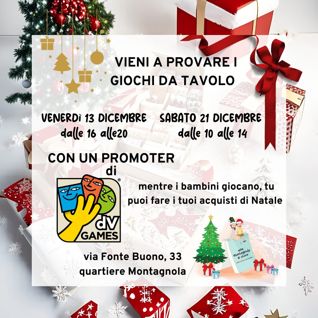 SABATO 21 DICEMBRE ore 10-14passa in libreria per provare i giochi da tavolo della casa editrice DVGames, un promoter ti farà provare diversi giochi.un'occasione per scegliere i regali di Natale divertendosi!ingresso libero - non è necessario prenotare