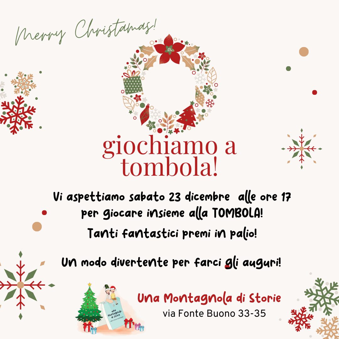 SABATO 23 DICEMBRE ORE 17Vieni a giocare alla tombola di Natale, premi in palio per tutti, si vince sempre!prenotazione obbligatoria, costo 5€ a bambin* Prenota via mail Prenota via telefono