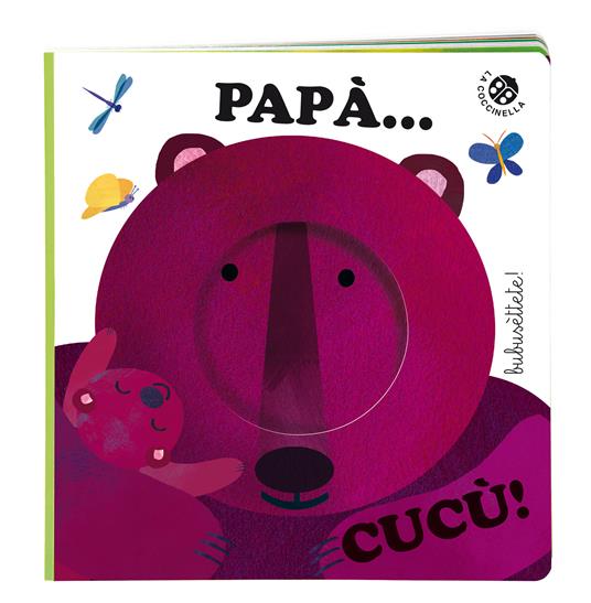 Un libro speciale che permette di fare il gioco del cucù col proprio bambino creando complicità tra padre e figlio. Il papà in questo libro scompare e compare mostrando il suo viso ogni volta attraverso il foro. Affacciandosi al buco di ogni pagina, il papà diventa, via via un orso, un polpo, un gorilla, un ghiro, una tigre… Un gioco che oltre a divertire, rassicura il bambino perché lo aiuta a gestire meglio la paura del distacco, tipica dei bambini. Età di lettura: da 1 anno.