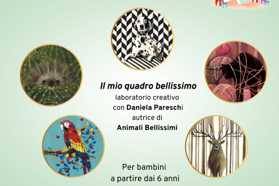 Laboratorio creativo con Daniela Pareschi SABATO 8 DICEMBRE ORE 10:30 Daniela Pareschi, autrice ed illustratrice di Animali Bellissimi, a partire dalle meravigliose illustrazioni del suo albo guiderà i bambini alla creazione del loro quadro. Un’opera d’arte che al termine del… Leggi tutto »Il mio quadro bellissimo